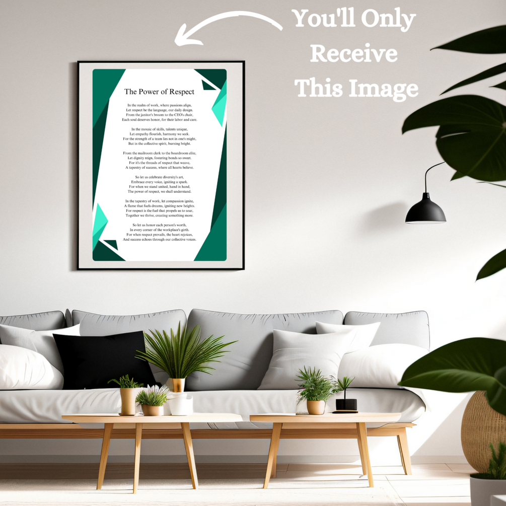 Immerse yourself in the profound emotions and thought-provoking verses of "The Power of Respect." Elevate your space with this poetic masterpiece that resonates with love, while adding a touch of sophistication and inspiration to any setting.