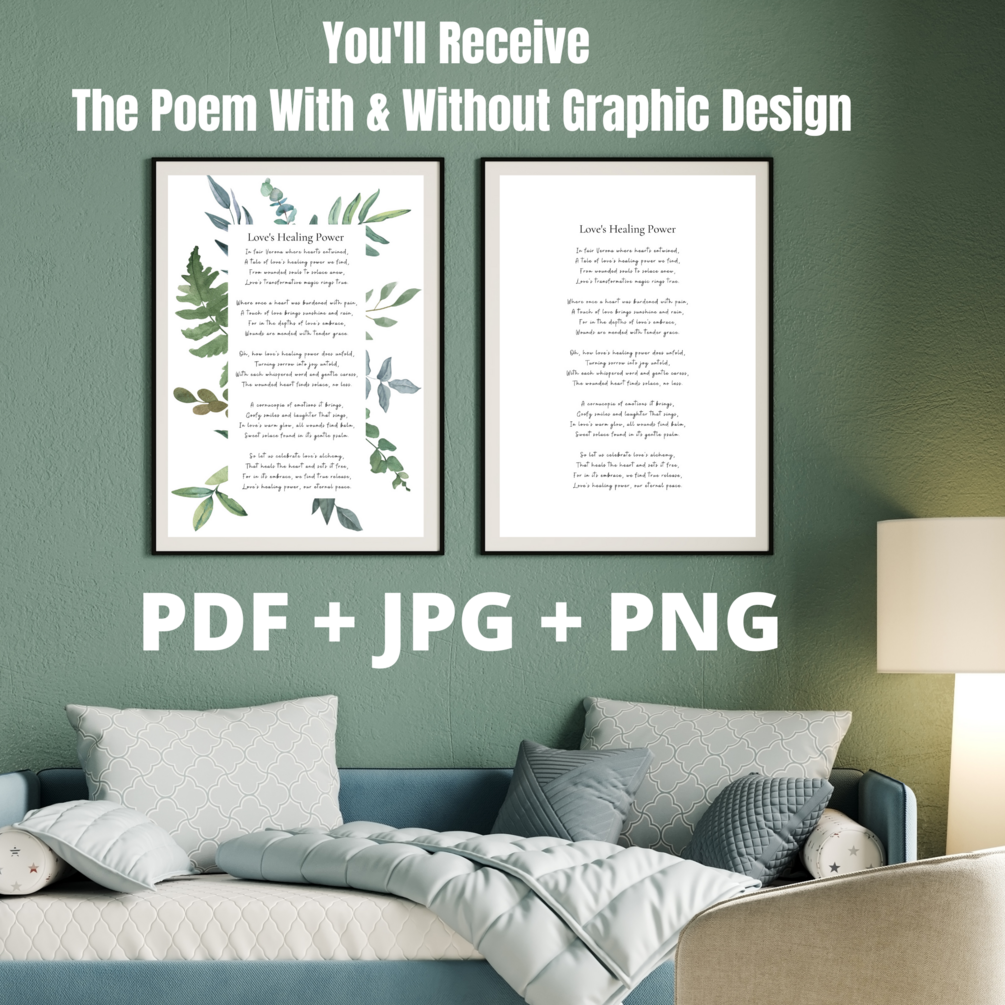 - Versatile Formats: The poem is provided in JPG, PNG, and PDF formats, enabling you to effortlessly incorporate it into your living room, dining room, bedroom, bathroom, or office.