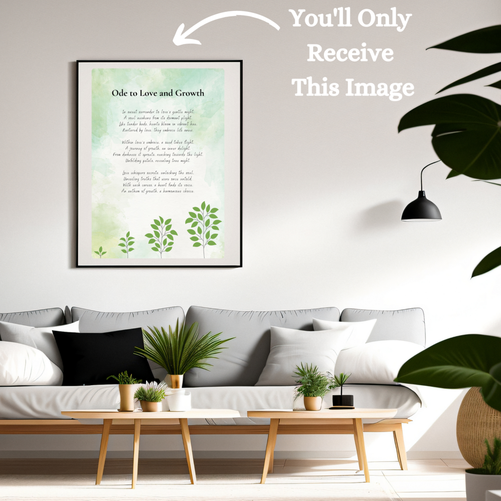 Unlock the power of poetry with "Ode to Love and Growth" and infuse your surroundings with love, inspiration, and artistic elegance. Order your digital copy today and embark on a poetic journey that will touch your soul and enrich your spaces.
